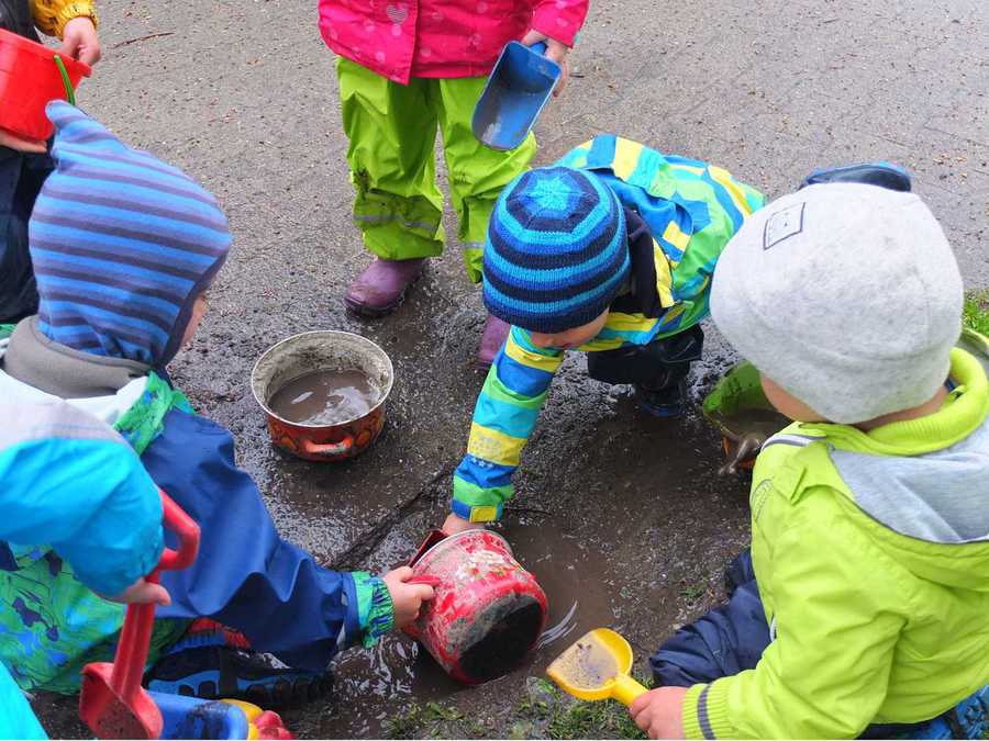 Die eigentliche Tätigkeit des Kindes ist das Spiel. Im Spiel ist das Kind einzigartig unverwechselbar. Alle Lebenskompetenzen sind angesprochen, es erfährt sich selbstwirksam und entfaltet seine Individualität. Im Spiel dürfen die Kinder zweckfrei sie selbst sein. Sie dürfen im Spiel erlebte Dinge verarbeiten, sie lernen mit Konflikten umzugehen, die im Miteinander entstehen. Im Freispiel können die Kinder mit fast allem , was es im Gruppenraum gibt, spielen und bauen. Die Spielmaterialien sind sehr einfach und sind meist Naturmaterialien. Nichts ist fertig und alles kann sich verändern. Das Spiel orientiert sich nicht an der "Funktion" eines Spielgegenstandes, sondern lädt zu freiem schöpferischen Gestalten ein. So werden Fantasiekräfte entwickelt, die die Grundlage für kreatives Denken sind.