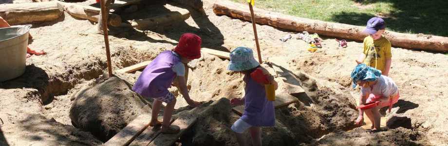 In unseren Gruppenräumen finden die Kinder: eine Bauecke mit Ständern, Brettern, Tüchern und Wurzeln, verschiedenen Bauklötzen und einfachen Spielfiguren. Daneben eine Puppenecke mit selbsgefertigten Puppen, kleinen Korbwägen, Küchengeschirr und Kochgelegenheit. Zum Ausruhen oder Buch vorlesen können die Kinder es sich in der Kuschelecke bequem machen. Große Tische laden zum Malen oder Basteln und Handarbeiten ein, aber auch zum großräumigen Bauen mit Tischen und Stühlen. Viel Platz für Bewegung bietet der grüne Raum mit seinen Kletter- und Umgestaltungsmöglichkeiten.